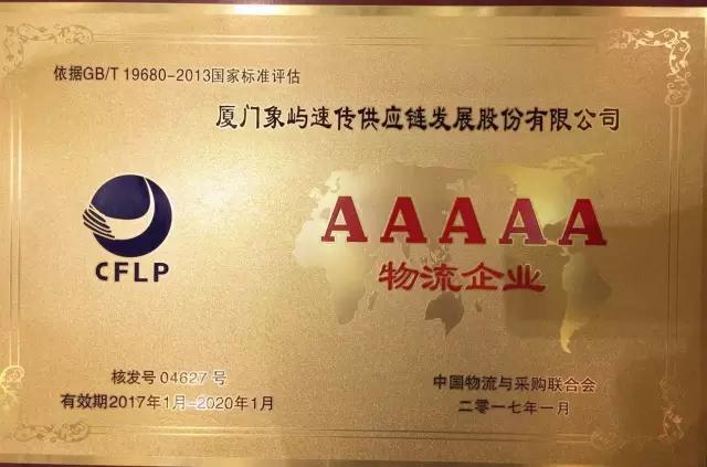 象嶼速傳榮膺國家5A級綜合服務(wù)型物流企業(yè)
