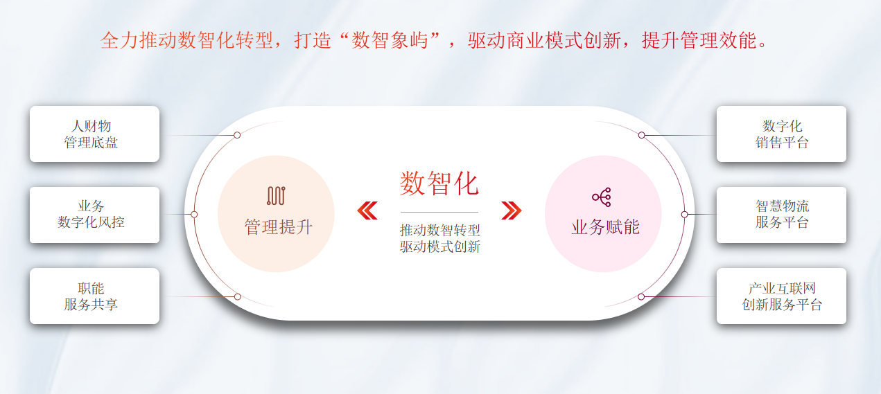 “烏卡時(shí)代”指正處于一個(gè)易變性、不確定性、復(fù)雜性、模糊性的世界里。從“區(qū)域性供應(yīng)鏈服務(wù)商”一步步成長為“中國領(lǐng)先的供應(yīng)鏈投資運(yùn)營服務(wù)商”的象嶼股份,堅(jiān)持以“平臺(tái)化、國際化、數(shù)智化”作為主要手段,在烏卡時(shí)代積極思變、應(yīng)變,提升供應(yīng)鏈韌性、柔性,實(shí)現(xiàn)保鏈、穩(wěn)鏈。